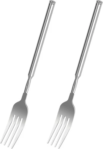 2x Telescopic Fork Stainless Steel 22-65cm Extendable for Bbq Fondue Dessert Food
