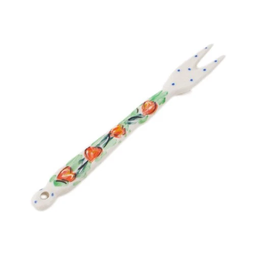 Polish Pottery Fondue Fork 5" Ceramika Artystyczna Tulip Wreath UNIKAT