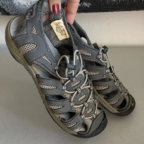 KHOMBU River Active Sport Sandals Leather Comfort Foot Bed Gray Quick Dry Sz 8