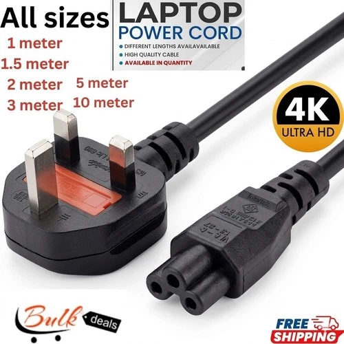 Laptop C5 Power Lead Cable Cloverleaf Wire Cord to UK 5 AMP Plug DELL /HP BRAND