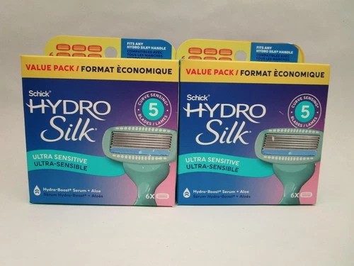 2 - Schick Hydro Silk 5-Blade Sensitive Care Razor Cartridge Refills 6 count NEW
