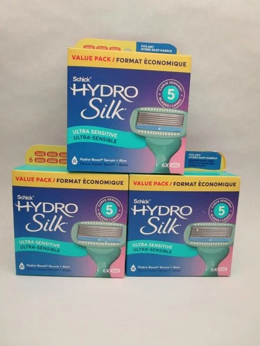 3 - Schick Hydro Silk 5-Blade Sensitive Care Razor Cartridge Refills 6 count NEW