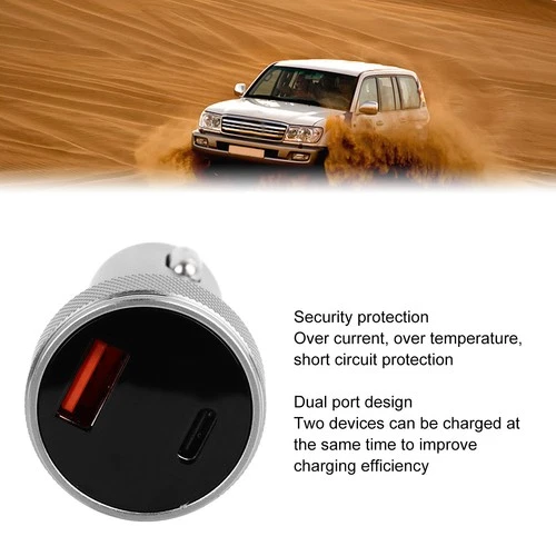 Dual Port Fast Car W/Digital Display For Vehicle 36W Grey