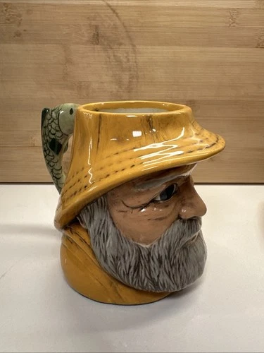 Vintage Bearded Fisherman Mug With Fish For A Handle Yellow