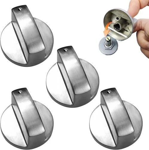 4 Pcs 6MM Silver Gas Hob Knobs, Universal Cooker Knobs, Control Knob for Gas