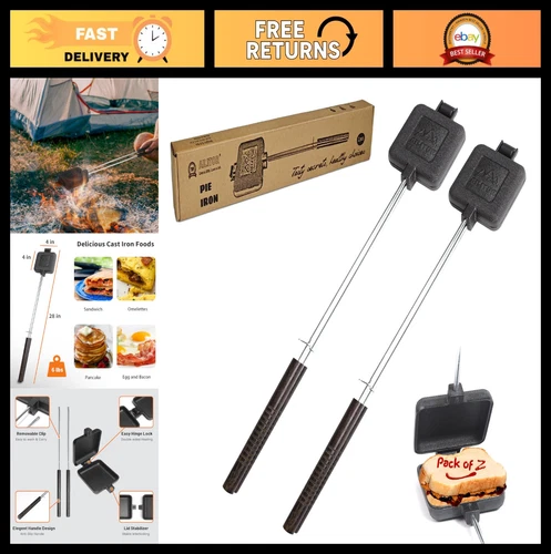 Cast Iron Campfire Pie Cooker Set - 2 Pack Sandwich Maker for Outdoor Cooking