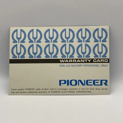 Pioneer - Vintage “For U. S. Military Personnel Only” Warranty Card