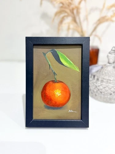 Orange Fruit oil painting- Original FRAMED Realism clementine Still Life Art