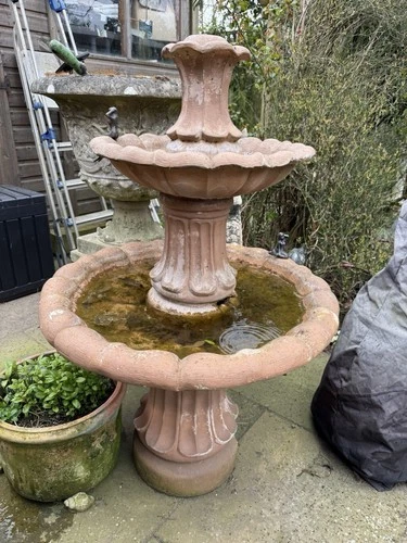 Garden Fountain 2 Tier Terracotta Effect Reconstituted Stone Water Feature