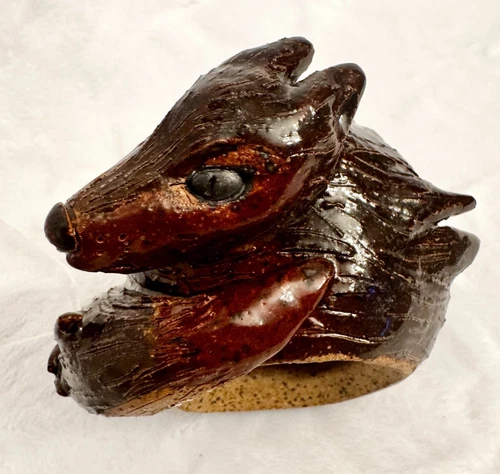 Stoneware Studio Pottery Figurine Small Fox at Rest Brown Signed Zoo RARE