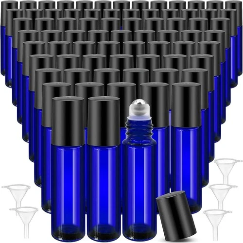 50x 10ml Glass Roller Bottles, Stainless Steel Ball, Leak Proof Lid, Fragrance Oil