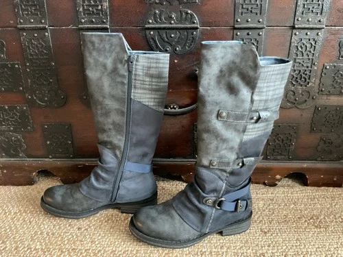 Rieker NWOT Franka Grey/ Blue Knee High Patchwork Boots 7.5/38 Women
