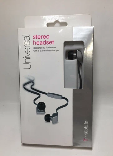 T-Mobile Stereo Headset Tangle Free Cord 3.5mm W/Mic - Flat Cable Headphones - P