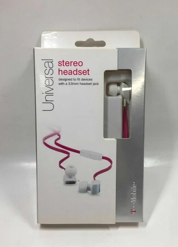 T-Mobile Stereo Headset Tangle Free Cord W/Mic - Pink & White Earbuds