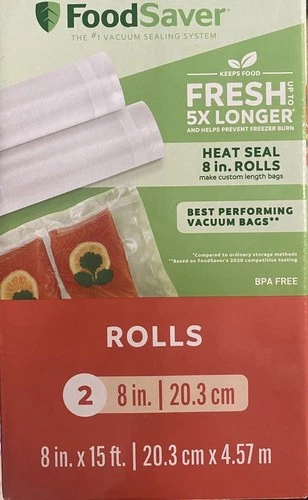 FoodSaver 8" x 15' Vacuum Sealer Roll, Clear, 2 Pack BRAND NEW