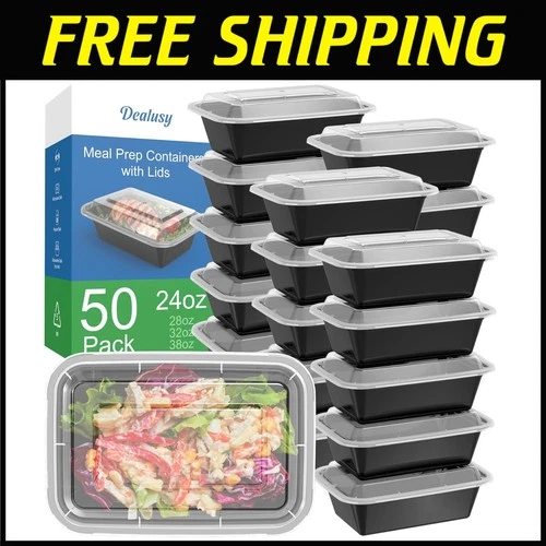 Dishwasher Safe 24oz Meal Prep Containers - 50 Pack