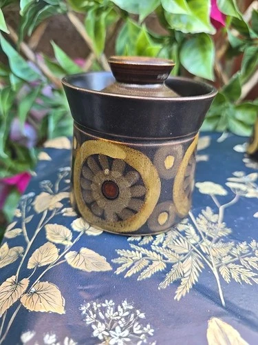 Vintage Retro Denby Arabesque Stoneware Jill Pemberton Lidded Sugar Bowl