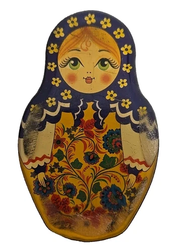 Vintage Russian Matryoshka Nesting Doll Fridge Magnet Hand Painted Wood Folk Art