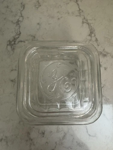 Vintage General Electric Small Square Refrigerator 4” Glass Container And Lid