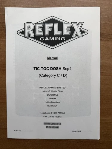 Tic Toc Dosh -Reflex gaming fruit machine Manual