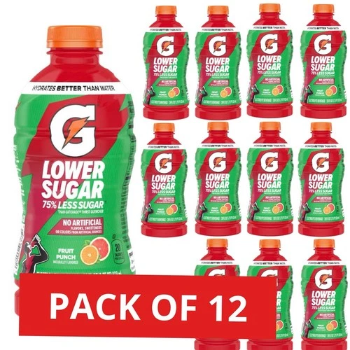 12pk Gatorade Lower Sugar Fruit Punch 75% Less Electrolyte Sports Drink, 28oz