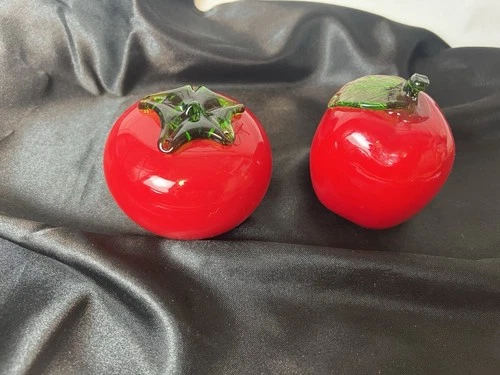 Art Glass Tomato And Apple Red Fruit Vegetable Paperweight Figurine Read