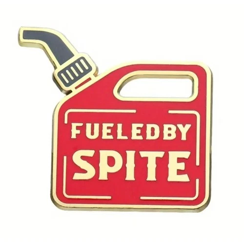Fueled By Spite Gas Can Enamel Pin Red Gold Lapel Brooch Accessory