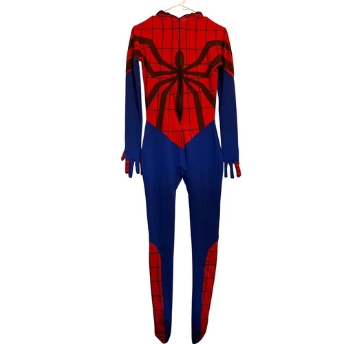Spiderman Full Body Cosplay Costume Red Blue Web Print Bodysuit Mask Feet Hero