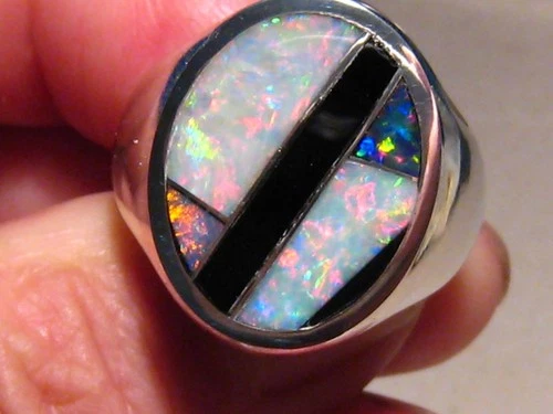 XXL 9 ct. Australian Opal & Obsidian Men's Ring , 23 grams of Silver