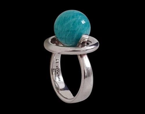 Hans Hansen Denmark Modernist Brutalist Sterling Silver Amazonite Heavy Ring #27