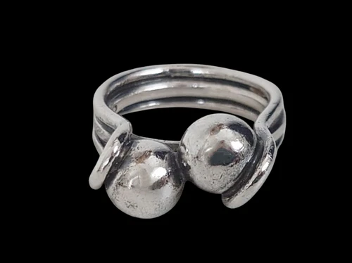Hans Hansen Karl Gustav Hansen Denmark Sterling Silver Modernist VTG Balls Ring
