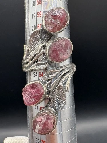 Vintage RAW PINK TOURMALINE Sterling Silver Statement North South Ring Size 10.5