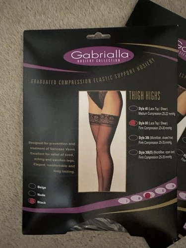 Gabrialla Style 80 Lace Top Sheer Firm Compression 23-30 Hosiery Black Large