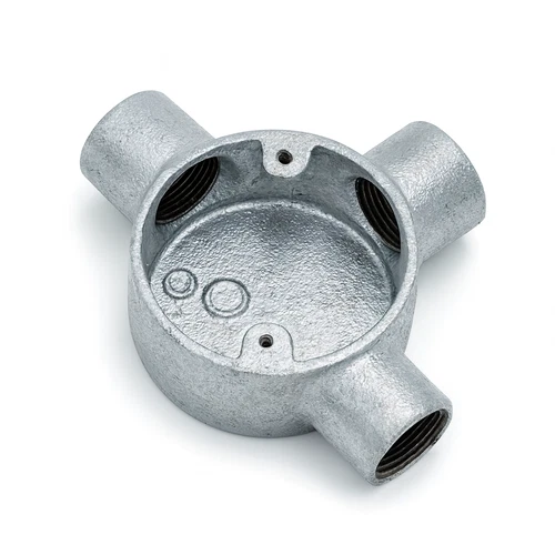 Pack of 5 Galvanised 3 Way Tee Conduit Box 25mm Steel Conduit Junction Box