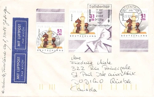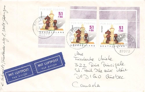 105954) Federal MeF No. 2260 (3) Playing Chess Pieces on Airmail Canada