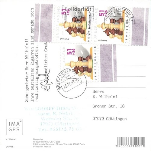 105935) Federal MeF No. 2260 (3) Games, Chess Pieces on Oversized Card
