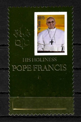 Gambia: His Holiness Pope Francis, Pope Francis, Gold Stamp Block, MNH