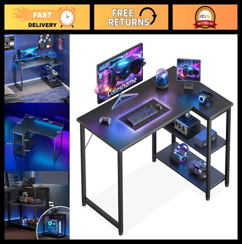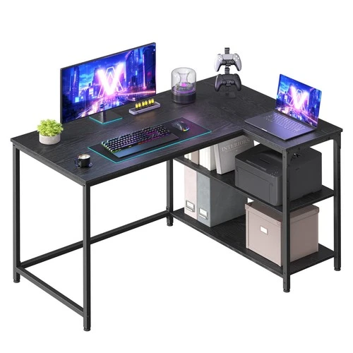L Shaped Corner Desk - Height Adjustable, Reversible Shelves, Gaming & Home Offi