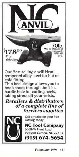 NC Tool Company Farriers Supply Anvils Pleasant Garden NC Vtg Magazine Print Ad