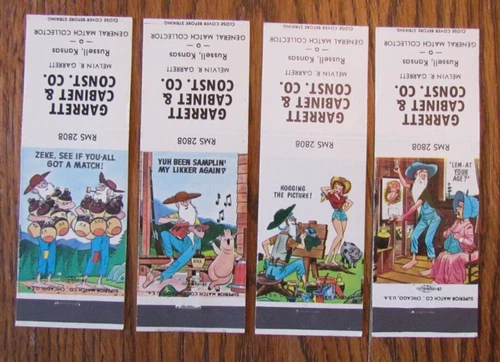 HILLBILLY SET OF 4 MATCHBOOK COVERS: GARRETT CABINET RUSSELL, KS MATCHCOVERS D12