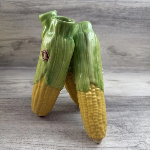 Patricia Garrett Three Corn Cob Vase Signed Hand Painted Pottery Harvest