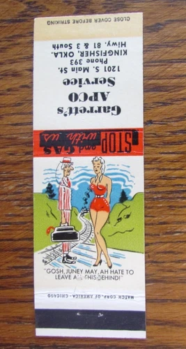 HILLBILLY MATCHBOOK COVER: GARRETT'S APCO GAS STATION KINGFISHER, OKLAHOMA -M12