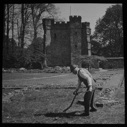 ANTIQUE Magic Lantern Slide WHALLEY ABBEY GATEHOUSE C1910 PHOTO LANCASHIRE