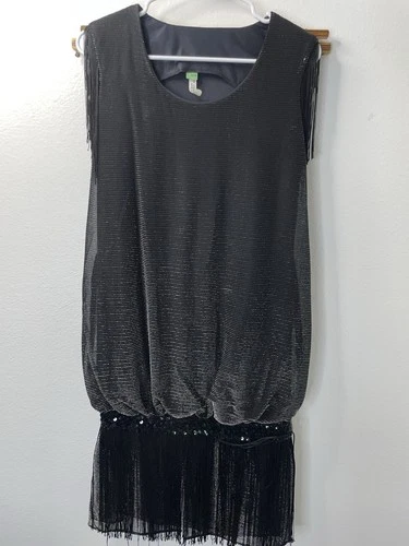 Womens Fringe Dress Black Sequin Sleeveless Flapper Party Gatsby Size 9/10