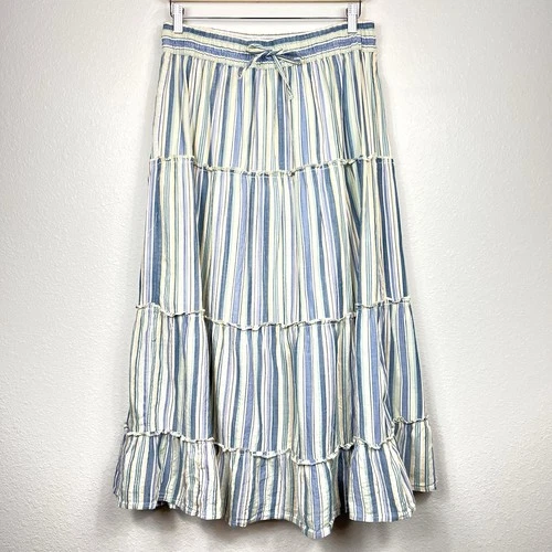 Broomstick Maxi Skirt Womens Medium Striped Tiered Prairie Cottage Boho Peasant
