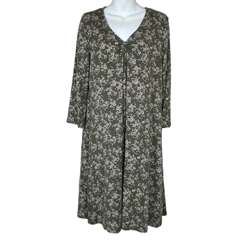 Garnet Hill Green Floral Gauze Dress w/ Pockets Tencel Blend | Size M