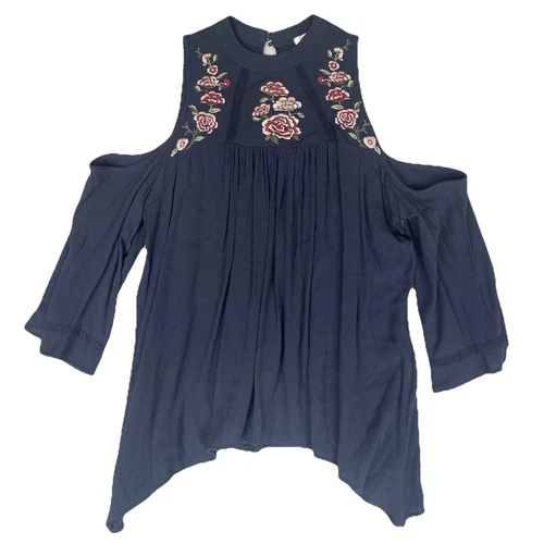 Maurices Shirt Womens S Blue Floral Embroidered Boho Chic Flowy Festival Hippie