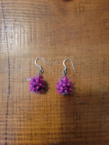 Vintage 2000s Y2K Pink Purple Gel Spike Ball Silver Tone Hook Pierced Earrings