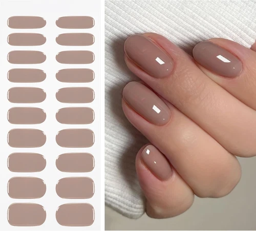 Gel Nail Stickers Coffee Semi Cured Gel Nail Strips Wraps UV/LED Nails Art Desig