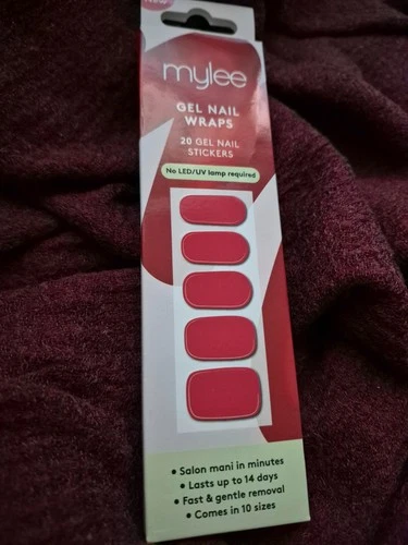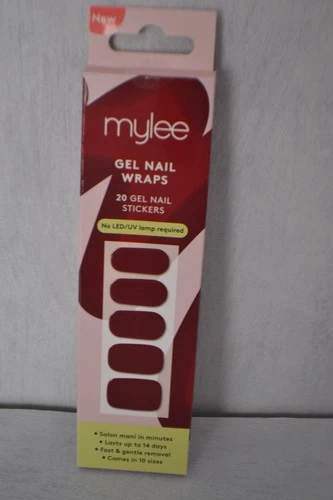 Sealed Mylee Gen Nail Wraps 20 gel nail stickers in dark red (Diva) gloss finish